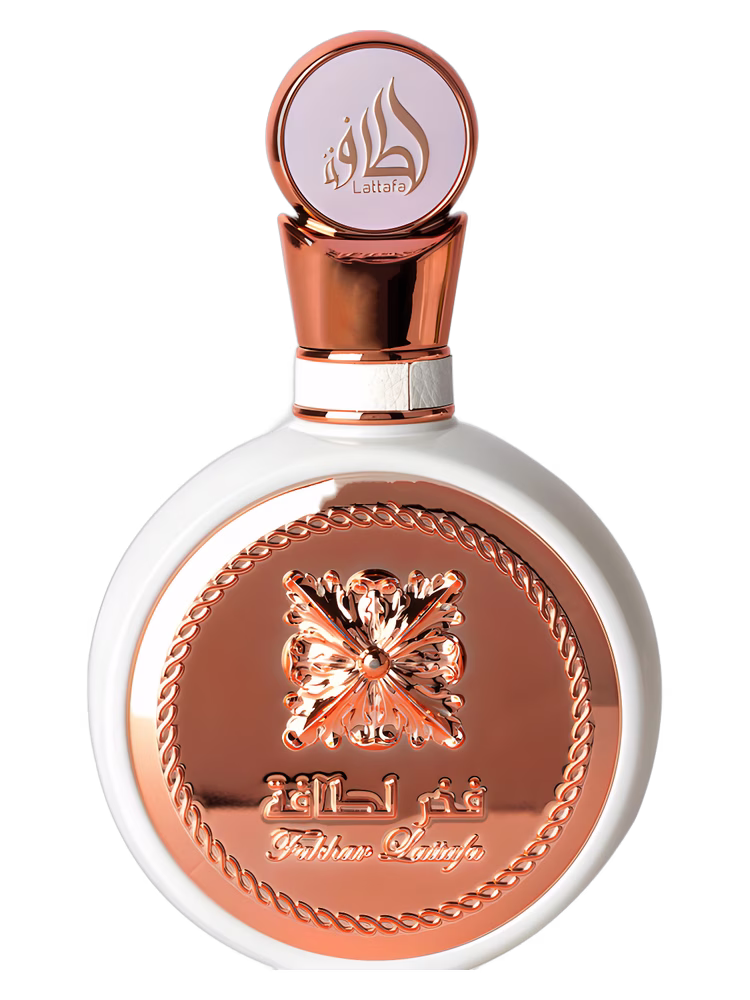 Fakhar Rose de Lattafa Perfumes é um perfume Floral Feminino. Fakhar Rose foi lançado em 2022. As notas de topo são: Frutas, Lírio, Romã e Aldeídos. As notas de coração são: Tuberosa, Jasmim, Gardênia, Ylang Ylang, Madressilva, Rosa e Peônia. As notas de fundo são: Baunilha, Almíscar Branco, Sândalo e Ambroxan.